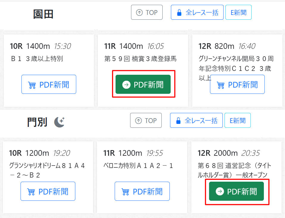 それ以外の競馬場は、新聞は作成しておりますが無料でご利用頂けます。