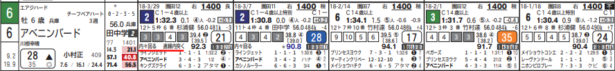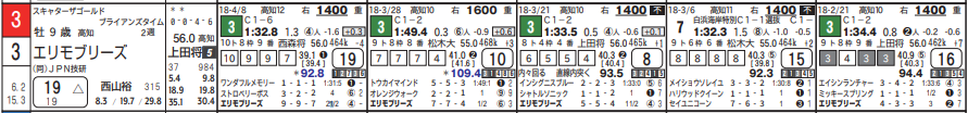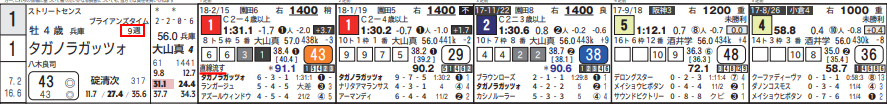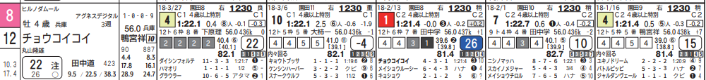 | 10 | 1 | モズバンブルビー | 郷間勇 | 28 | ◎ | ◎ | 6 | 4 | 5 | パッパカ | 西川敏 | 26 | ○ | ○ | 5 | 2 |