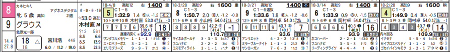 | 9 | 3 | トゥルエノ | 上田将 | 31 | ◎ | ○ | 6 | 5 | 4 | エイシンルフィー | 木村直 | 30 | ○ | 注 | 2 | 3 |