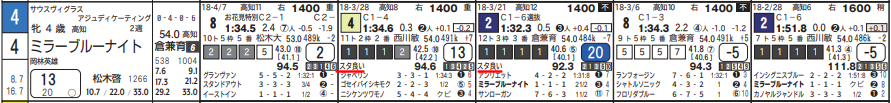 | 4 | 3 | マジックバラード | 永森大 | 22 | ◎ | ○ | 1 | 4 | 6 | トウカイリオナ | 妹尾浩 | 19 | ○ | ◎ | 5 | 5 |