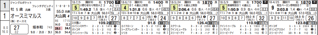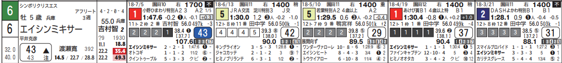 ①③は印入らず。ただ①は6走前に指数45を出しておりヒモには入れた方が良いか。
