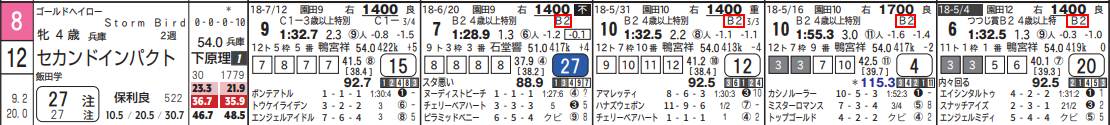 ⑫は降級2走目。6走前にも指数27出しており上位とも差はない。何よりも下原騎手が乗るのはプラス。