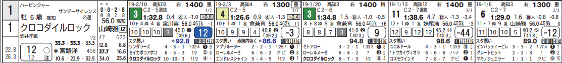 ①は前走の指数12。3走前にも指数9出しておりこのくらいは走れる。前走好走の宮川騎手から山崎