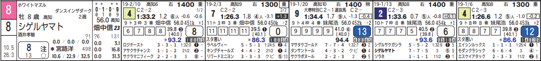 ②は2走前に1600m戦を経験しており指数10。距離を問わず10前後の指数は出せる。