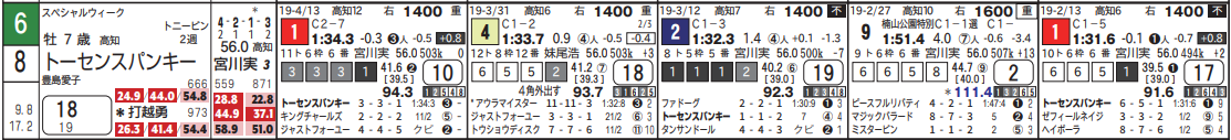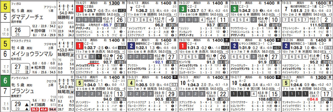 2頭とも背景色付きで高指数。「最後流す」「直線流す」の特記もあり余力もあった。