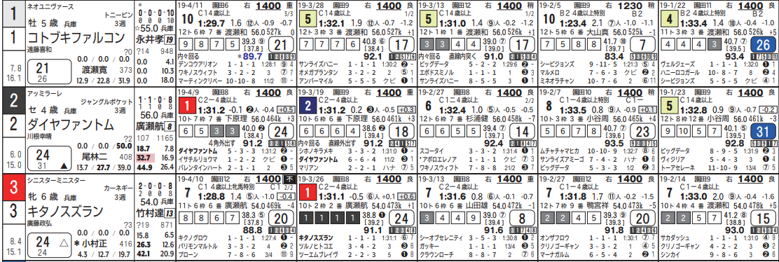 ただし今回はC1への昇級戦。連対時の指数も高くなく印も入らず。