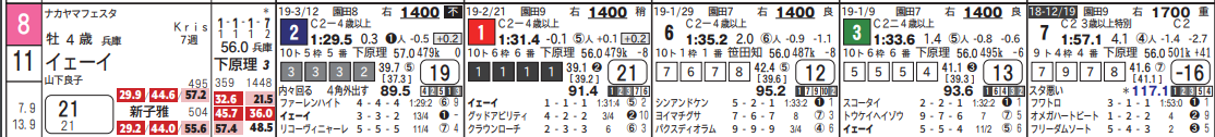 ⑨は永島→大山騎手へスイッチ。大山騎手の騎乗時は前に行けておりこれは良さそう。