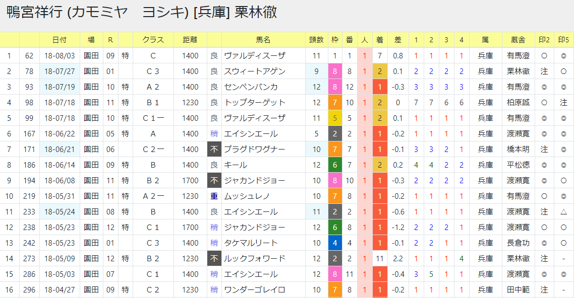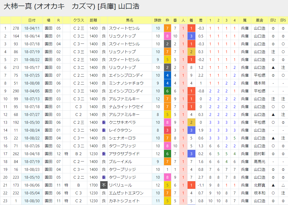 園田・高知所属騎手の過去300走分の成績データを作成してみました。