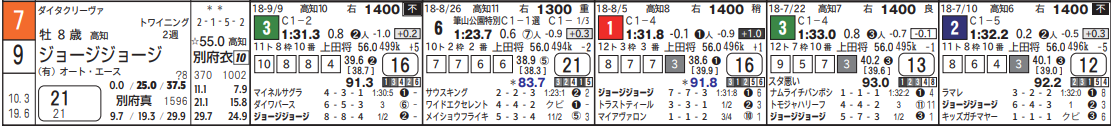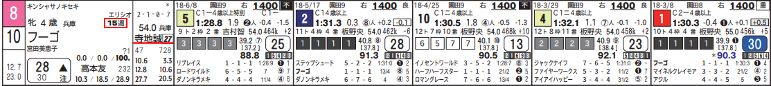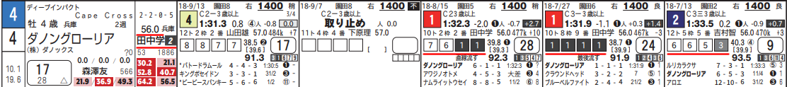 ④は4走前、3走前の勝ちっぷりが良い。4角までに押し上げていく形で結果を出しており前走は上手く