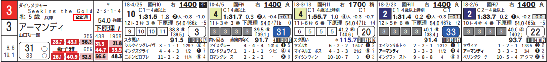 印◎◎は⑤。前走指数38はかなり高い。今回は斤量1キロ増だが前回の走りが本物なら。圧倒的な人気というわけでもなく狙い易い。