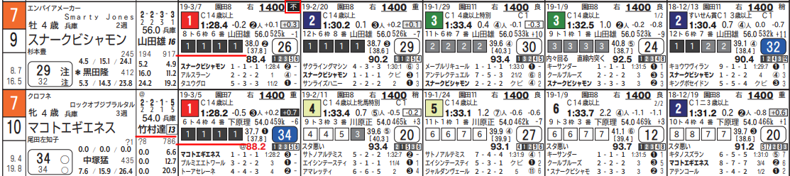 騎手・厩舎成績と、競馬場成績