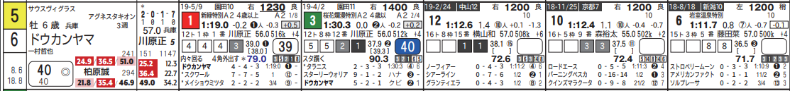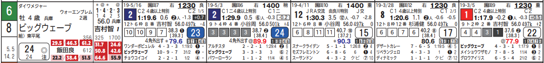 | 6 | 10 | ブルーメーア | 左海誠 | 21 | ◎ | ◎ | 1 | 1 | 5 | ウニヴェルソ | 西啓太 | 15 | ○ | ○ | 12 | 3 | 6 |