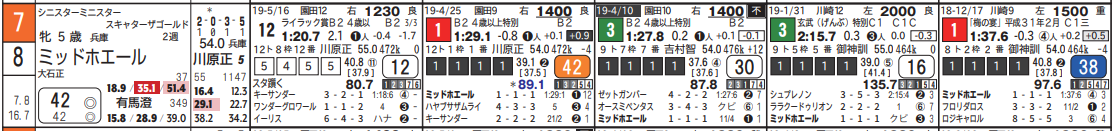 | 5 | 8 | プリプリクインダム | 福原杏 | 20 | ◎ | ◎ | 6 | 1 | 5 | アルミサエル | 川島正 | 16 | ○ | ○ | 12 | 3 | 4 |