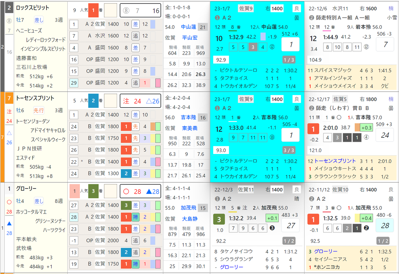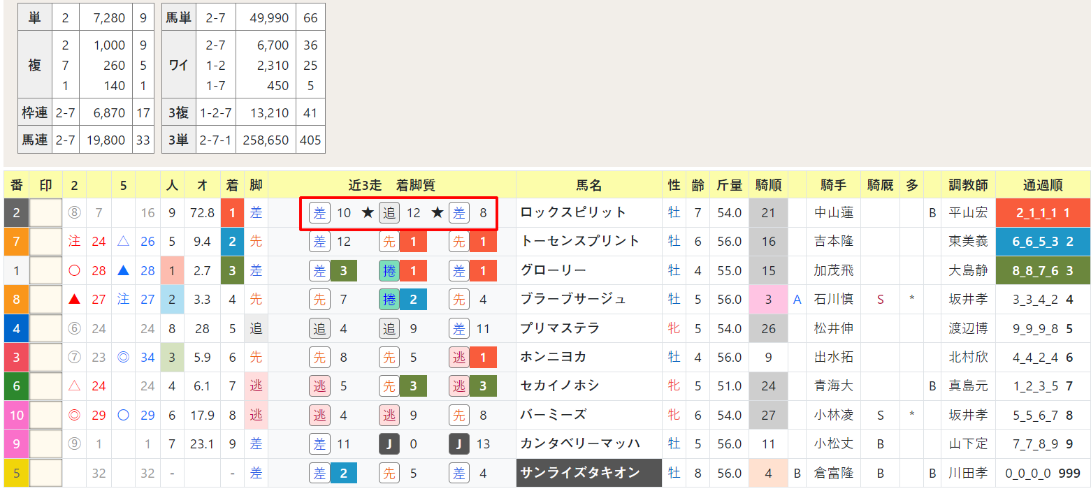 騎手・厩舎の組み合わせでの、勝率・連対率・複勝率となっています。