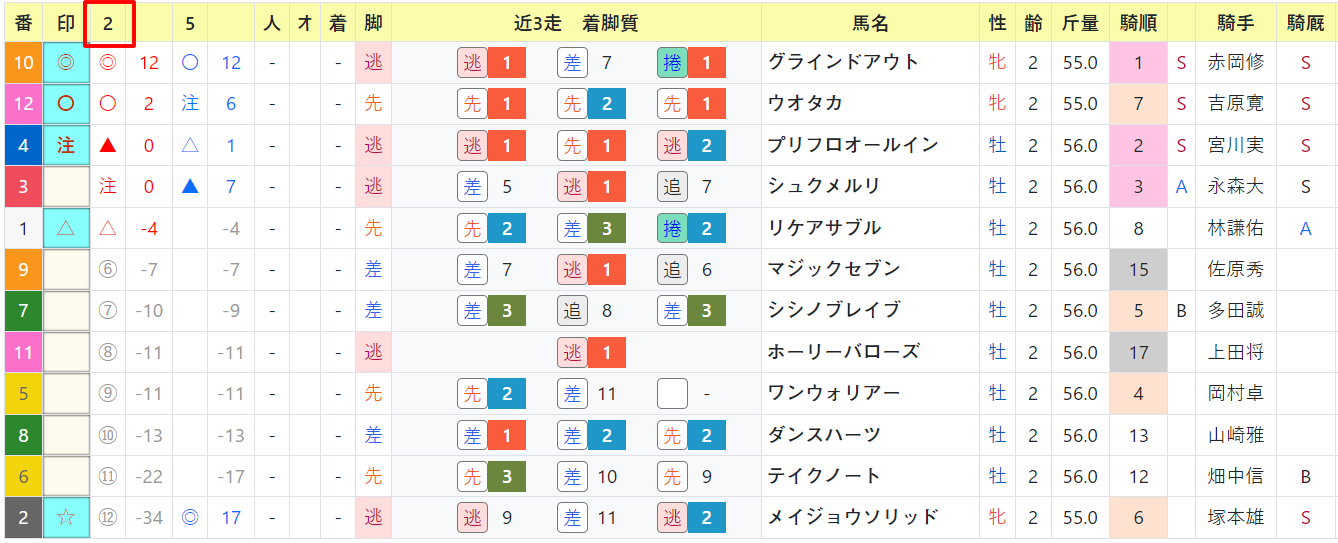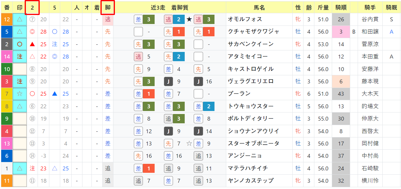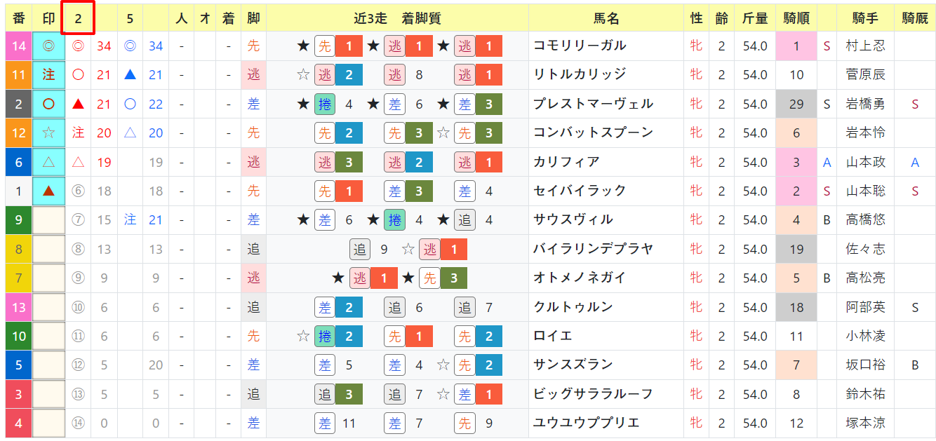 2走前の「42」が、2走指数の対象となり、出走馬中5番目の値で△印。
