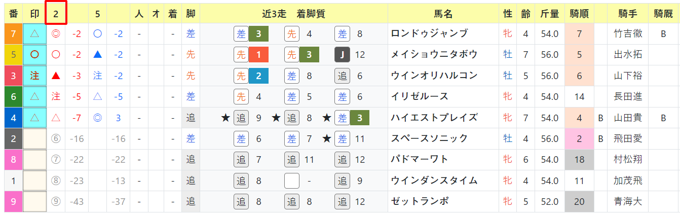 2走前の「42」が、2走指数の対象となり、出走馬中5番目の値で△印。