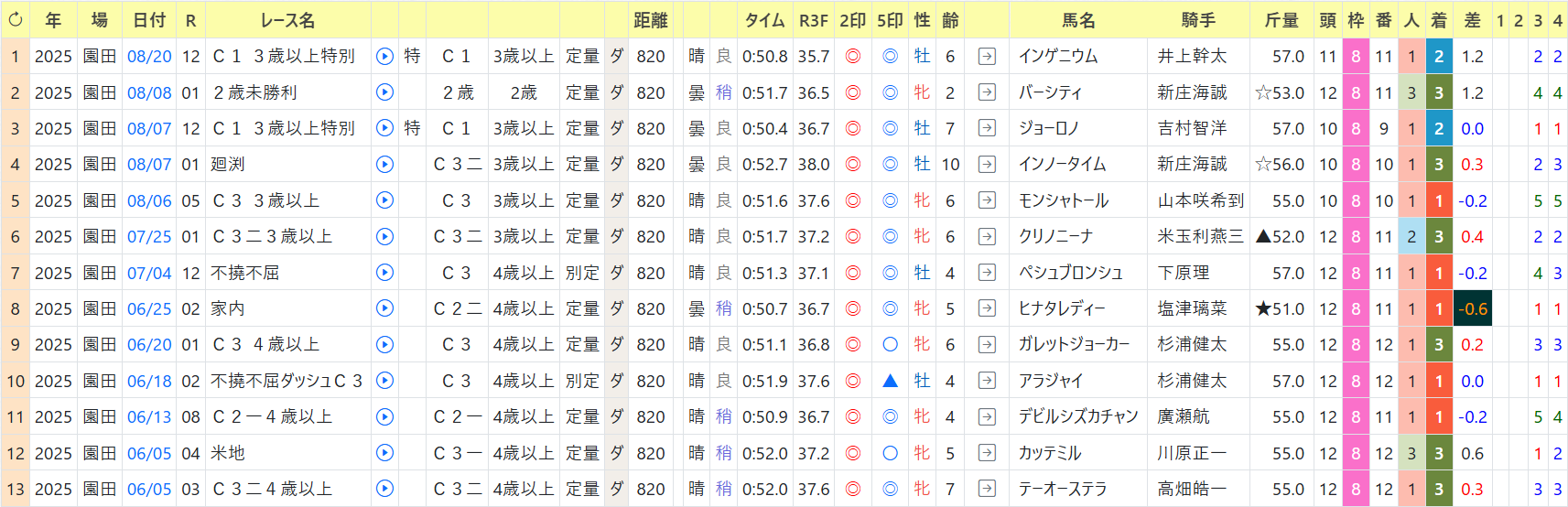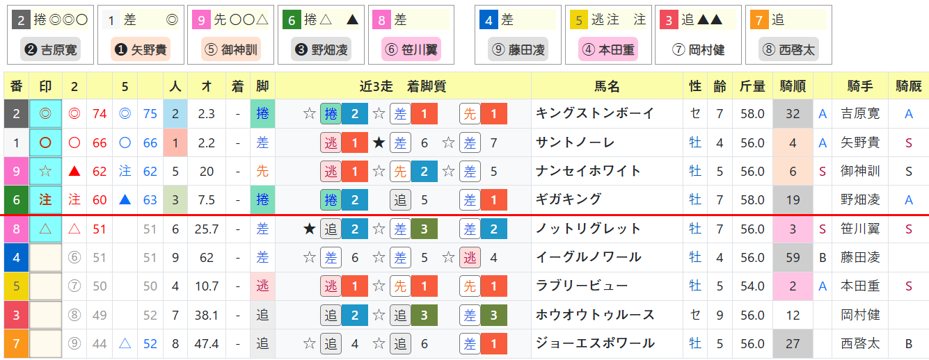 2走前の「42」が、2走指数の対象となり、出走馬中5番目の値で△印。