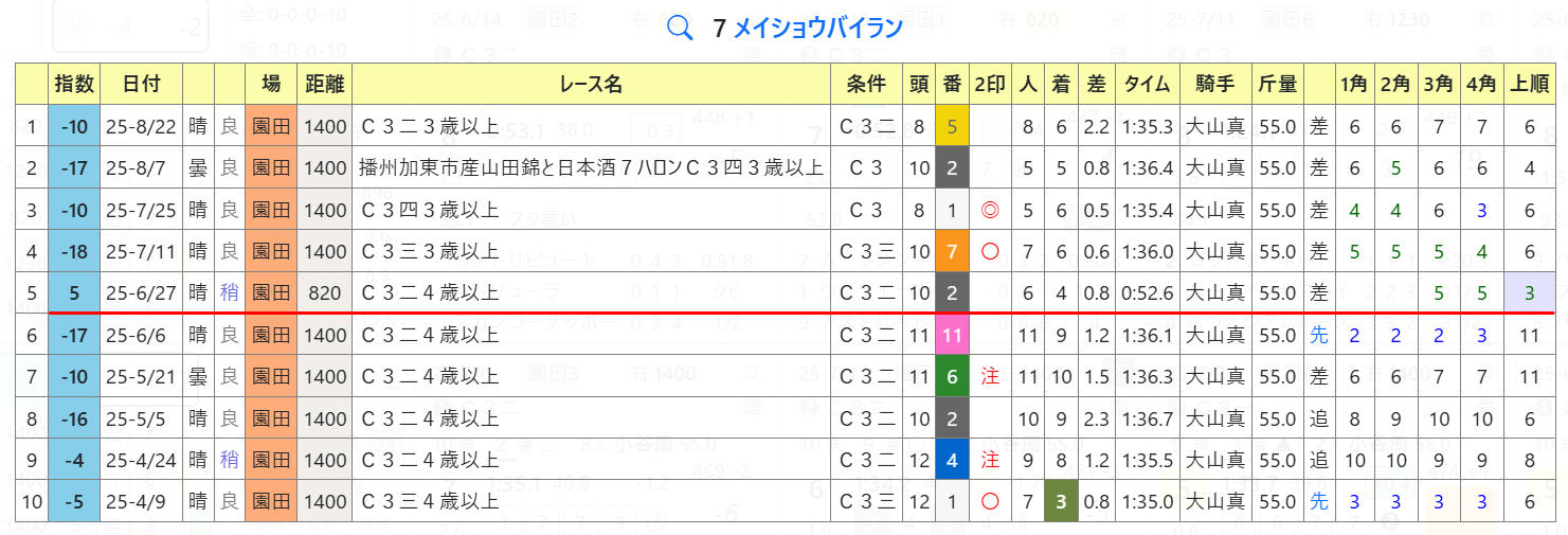 2走以内で指数が低い時にも「ここまで出せる」という目安になります。