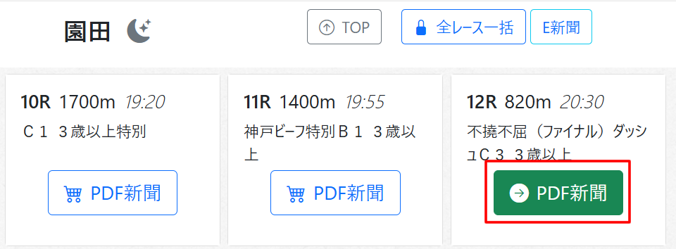 「PDF新聞」のリンクから、その日の競馬場の全レース一括のPDF新聞を開きます。続きを読む