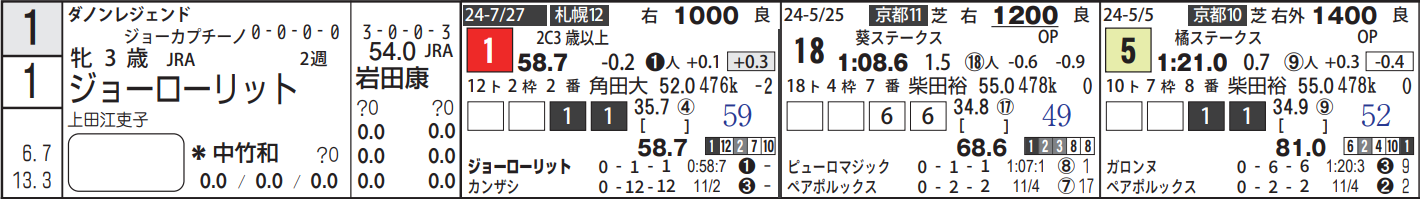出走数はまだ少ないものの、既に勝ち馬が出ており3着馬も1頭。