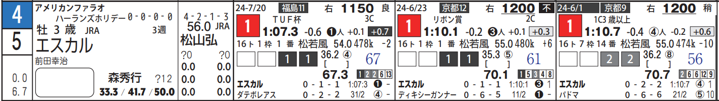 短距離なので出遅れ即終了…はあり得るものの、ギリ1ミスまで許容出来るのは5・エスカル。