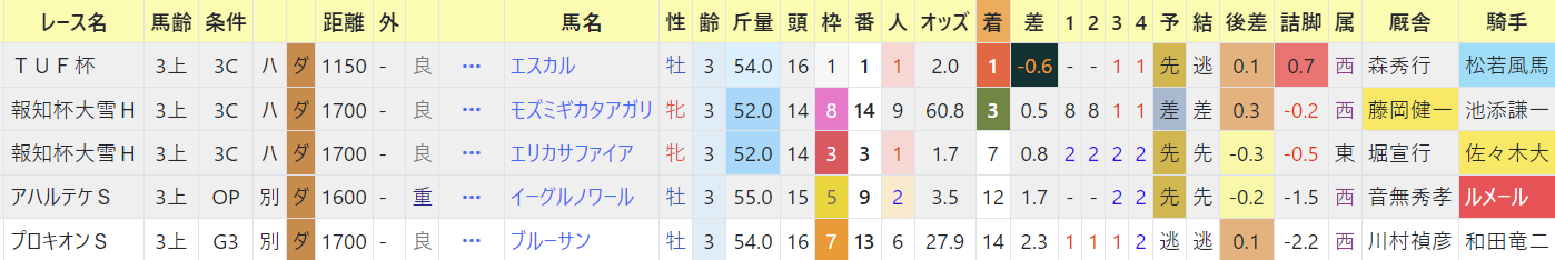 こちらはJRAで3勝クラス勝ち馬。