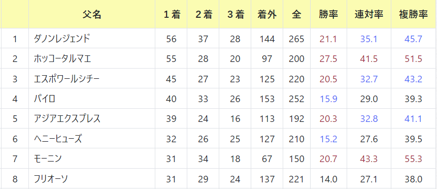 JRAのダートでもメキメキと成績を上げて来ていますが、門別競馬場では既にトップの父です。