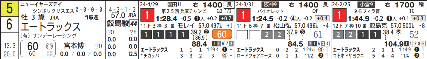 1着馬がエートラックス、2着がチカッパでした。