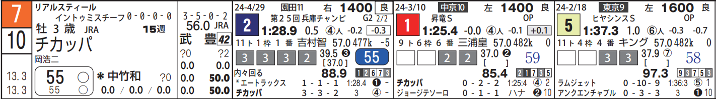 中竹厩舎の2頭出しで、もう1頭は外枠の10・チカッパ。