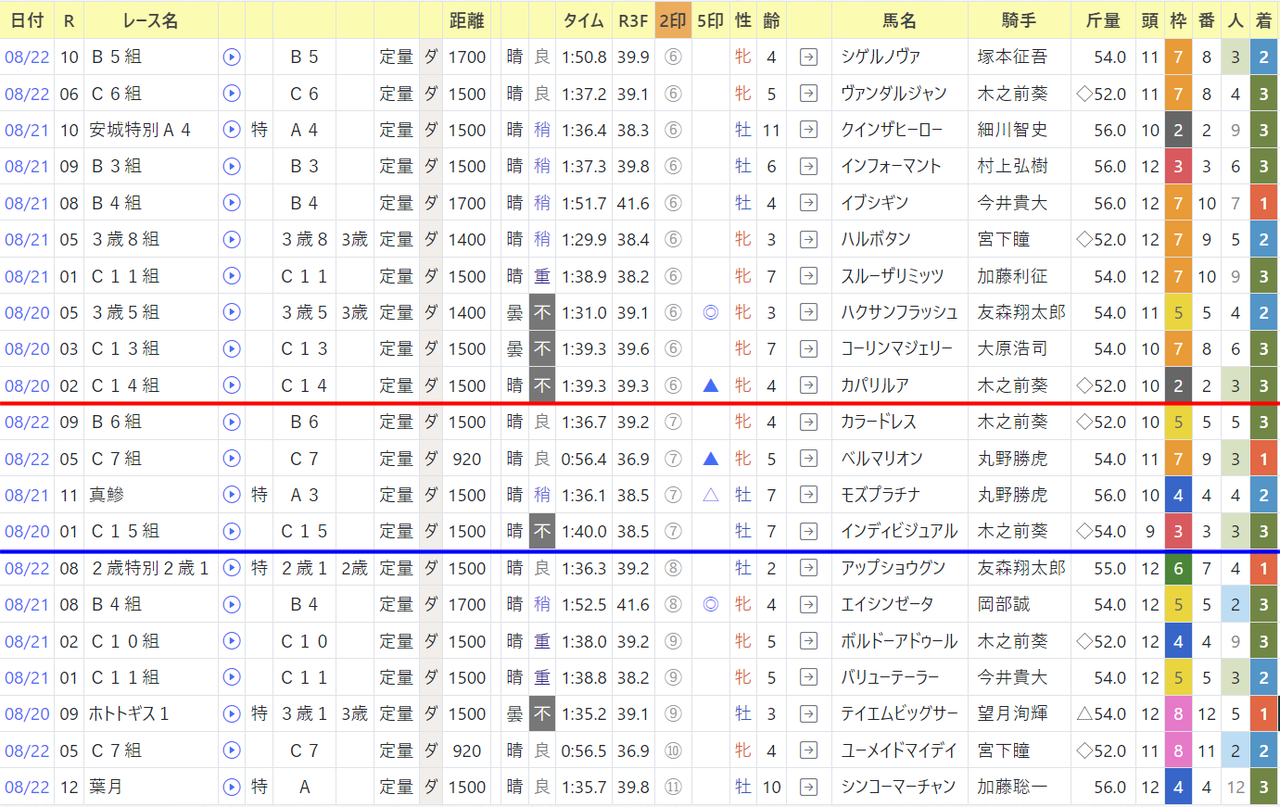 印以外の要素だと、JRA・他場からの転入馬の存在があります。圏内に来るパターンはほぼ固定なので大丈夫、簡単です。