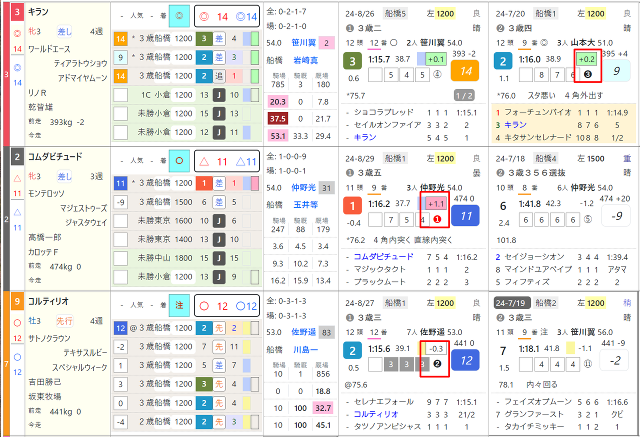 と、ここは3歳戦で転入初戦馬がいたから、ここまでみました。