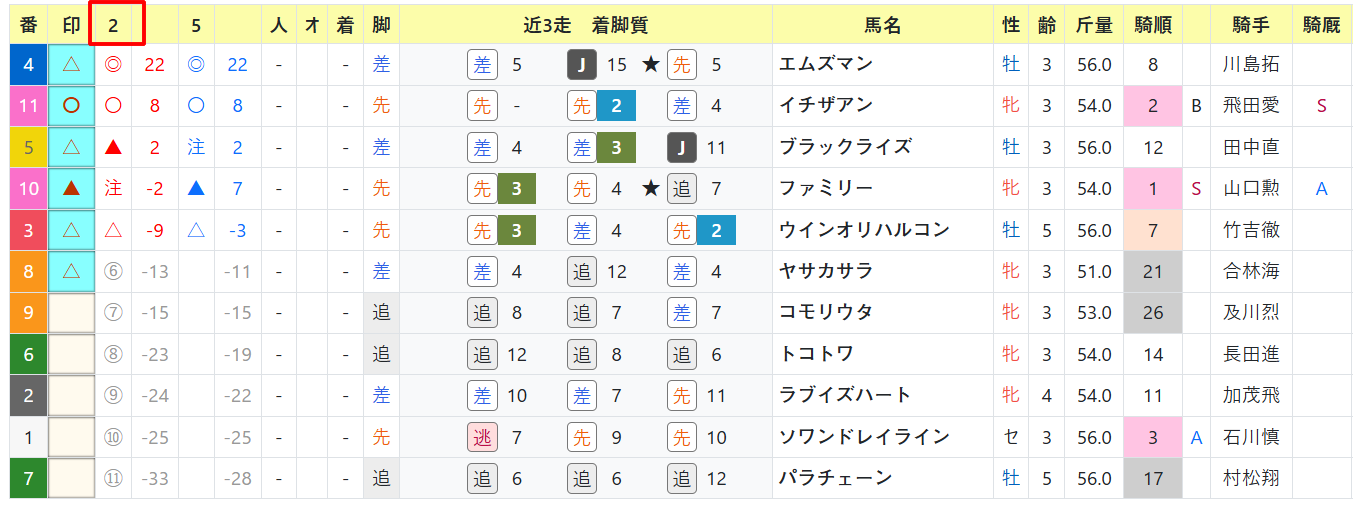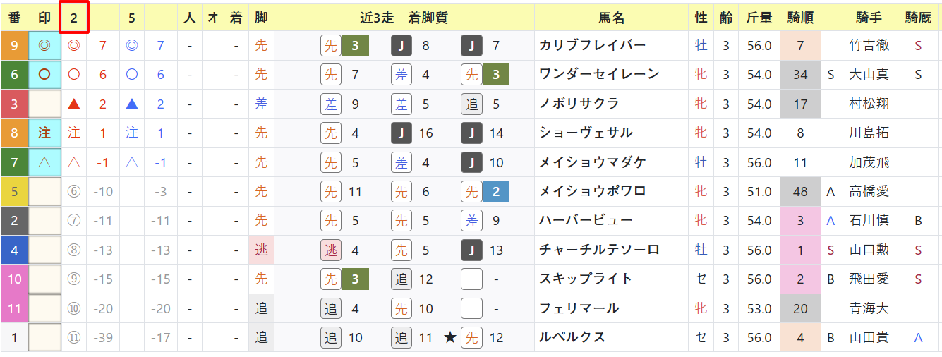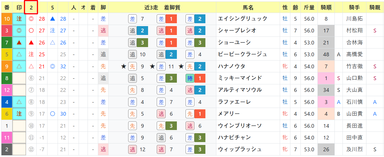 大山真吾騎手は指数◎〇の馬はそこそこ、高橋愛叶騎手も1頭は◎がアリ。