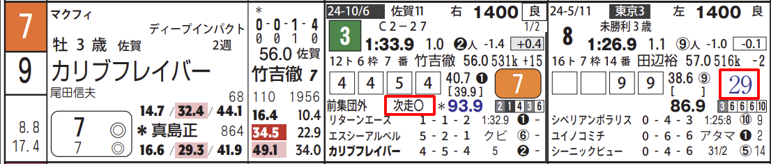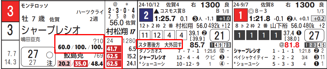 先団の外を回っての3着で、特記には「次走〇」が入っております。