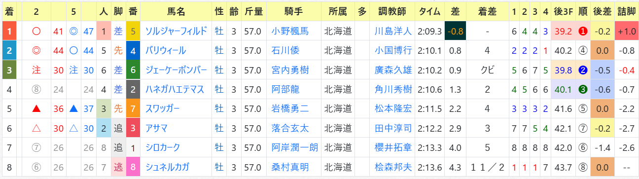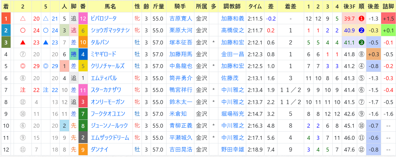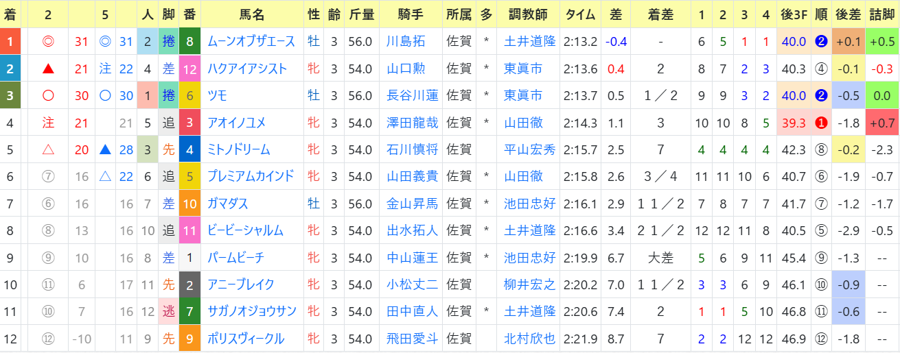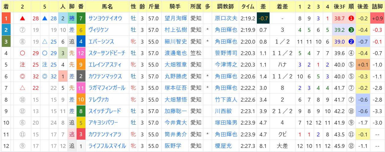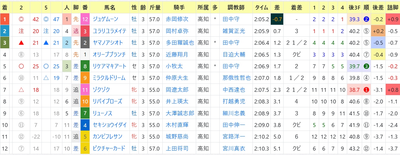1~3着馬の馬名と()内の数字は、マキシマム指数