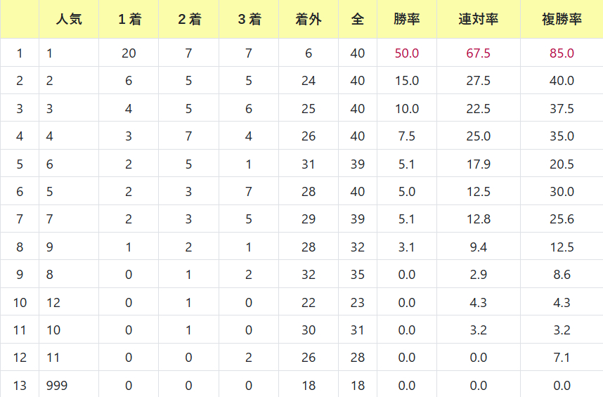 1番人気が圧倒的に強すぎる