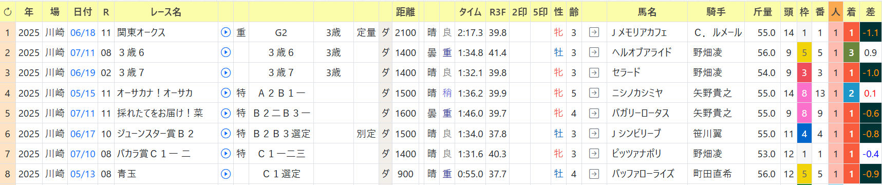休み明け前の2走目もメンバーが揃った中での上位着順