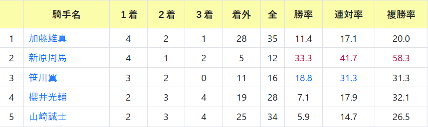 ちょっと他の騎手と率が違います