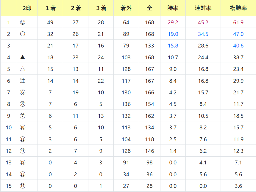 複勝率50%超えており、2回に1回は圏内です