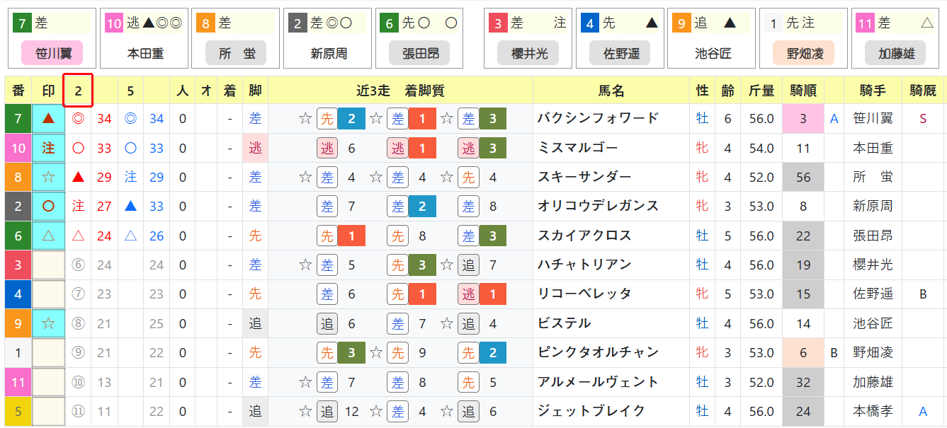 指数は◎の笹川翼騎手で、人気にもなるでしょう