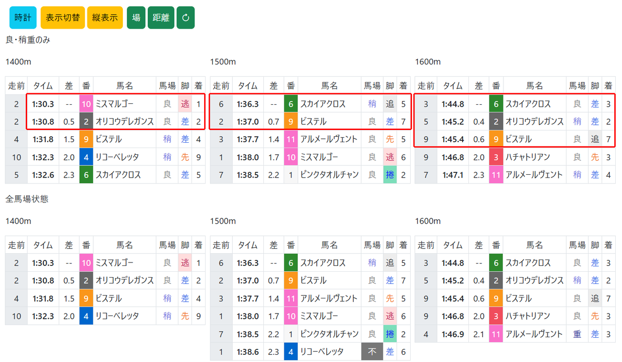 主要な馬達を「縦表示」で見ると