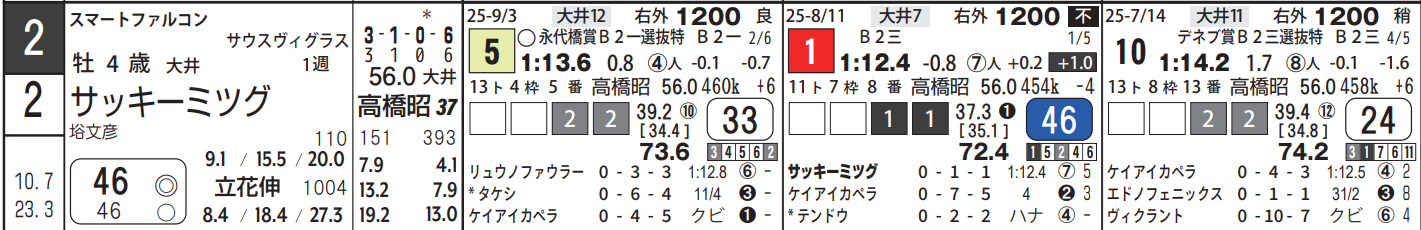 JRAから転入して、ぼちぼち指数を上げつつ、前走は逃げました