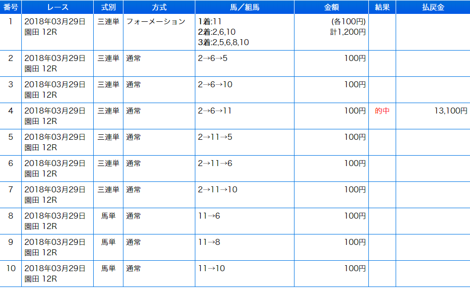 12レース中10レースで馬券圏内、2-6-2-2という結果でした。