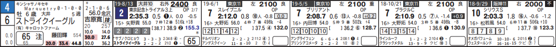 06番ストライクイーグルは昼のオッズだと人気になるようですが、前走の65は4番手止まり。
