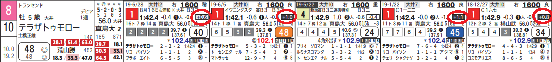 3走前の帝王賞は道悪でしたが、76と前走以上の内容。
