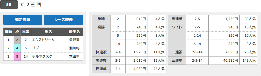 鞍上の成績だけが少し不安ですが、その他の項目からは軸に最適と言えそうです。