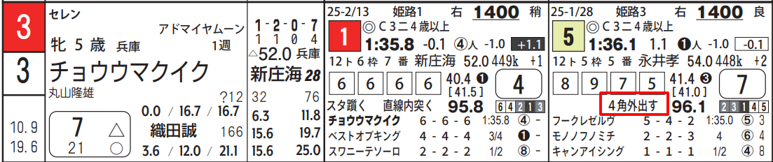前走の特記に「内回る」が入っており5着以内であれば、相手に入れてみてください。