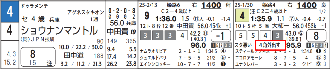 そんな馬は大体近走で「外出す」系の特記が入っております。